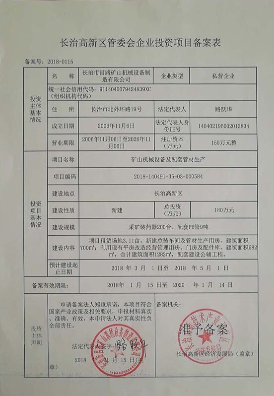 關(guān)于“長治市昌路礦山機(jī)械設(shè)備制造有限公司礦山機(jī)械設(shè)備及配套管材生產(chǎn)項(xiàng)目”環(huán)境影響報(bào)告表的批復(fù)